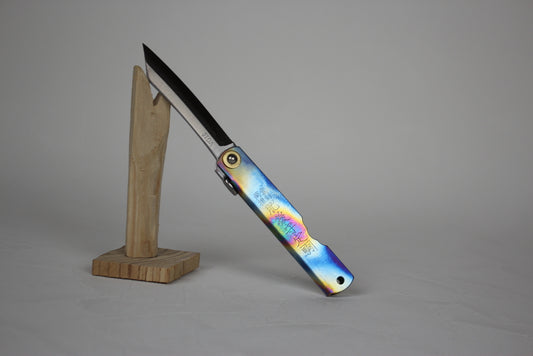 Higonokami Japanese pocket knife VG-10 steel blade titanium rainbow handle
