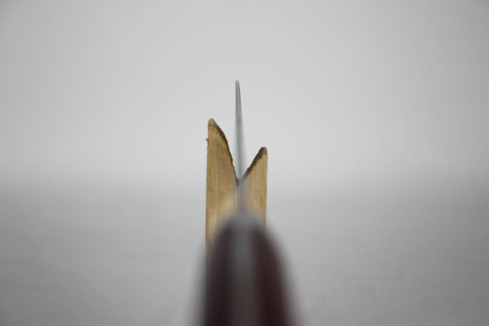 The Sujihiki knife, with its distinct long and slender design, is perfect for slicing meat and sashimi. Its elongated blade ensures seamless cuts from heel to tip for both meat and fish.