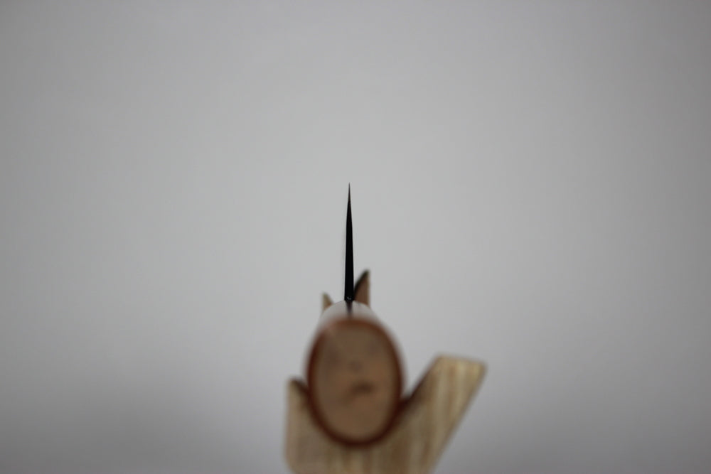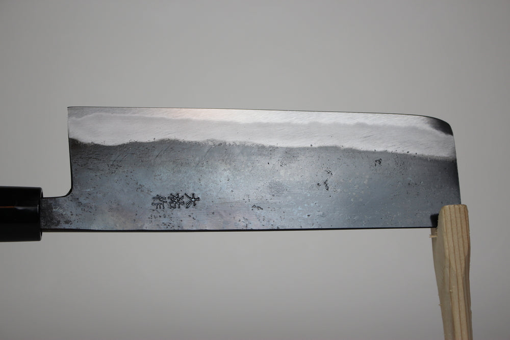 170 mm double bevel Nakiri knife. Spine and choil are rounded that touching knives feel is soft that his kitchen knife is cutting techniques friendly. Spine thickness is thicker than usual kitchen knives. All the productions have proceeded by Mr. Daisuke Nishida, From forging to sharpening. using white 1 steel that edge retention is very well.
