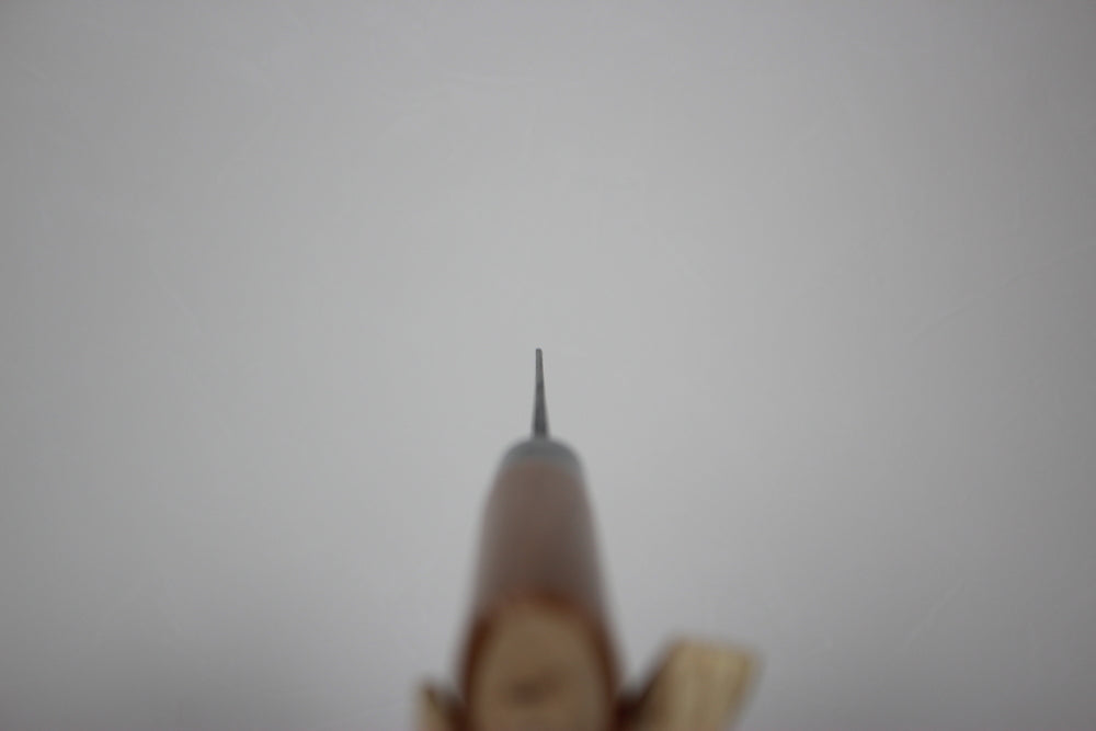 Mr. Daisuke Nishida creates knives products by himself, from forge welding to attaching handle. He didn't choose cald steel, because he known an artisan made hand forged kitchen knife quality is the best that he want to make the self convincing products. Core steel is chosen white 1 steel for proving his technique and keeping sharpened edge long time. Self forge welding, beautiful kasumi pattern and water quenching white 1 kitchen knife with well sharpened product is the artisan Daisuke Nishida knife production so that you may feel the artisan spirits throughout this beautiful kitchen knife.