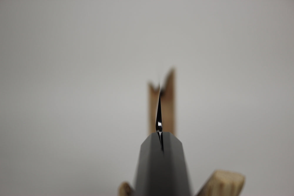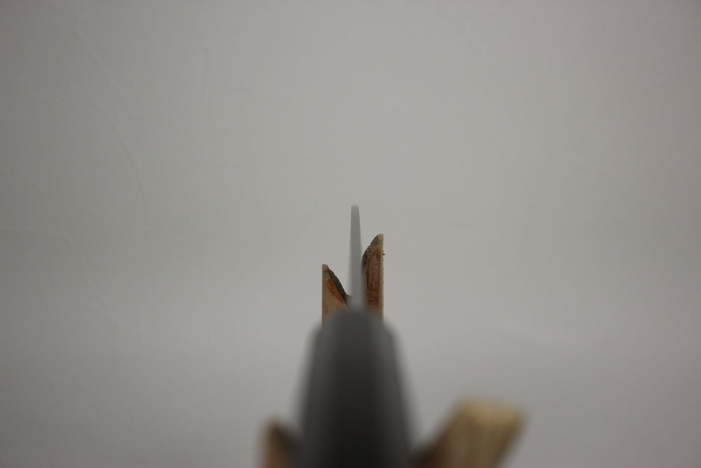 Artisan processed water quenched White 1 steel, Both side of blade has ripple which proof of Hon-Yaki made. Mirror polished with ripple and beautifully sharpened all, especially the edge and Ura-suki backside. All processing are made of Sakai region artisans with the stunning and precized quality. You feel the Japanese artisan soul and understand the value of the price.