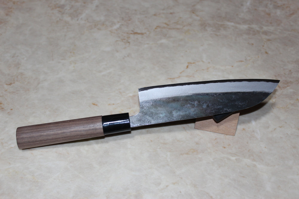 Japanese Kurouchi Santoku knife Blue 1 steel 165 mm walnut handle Tadayoshi