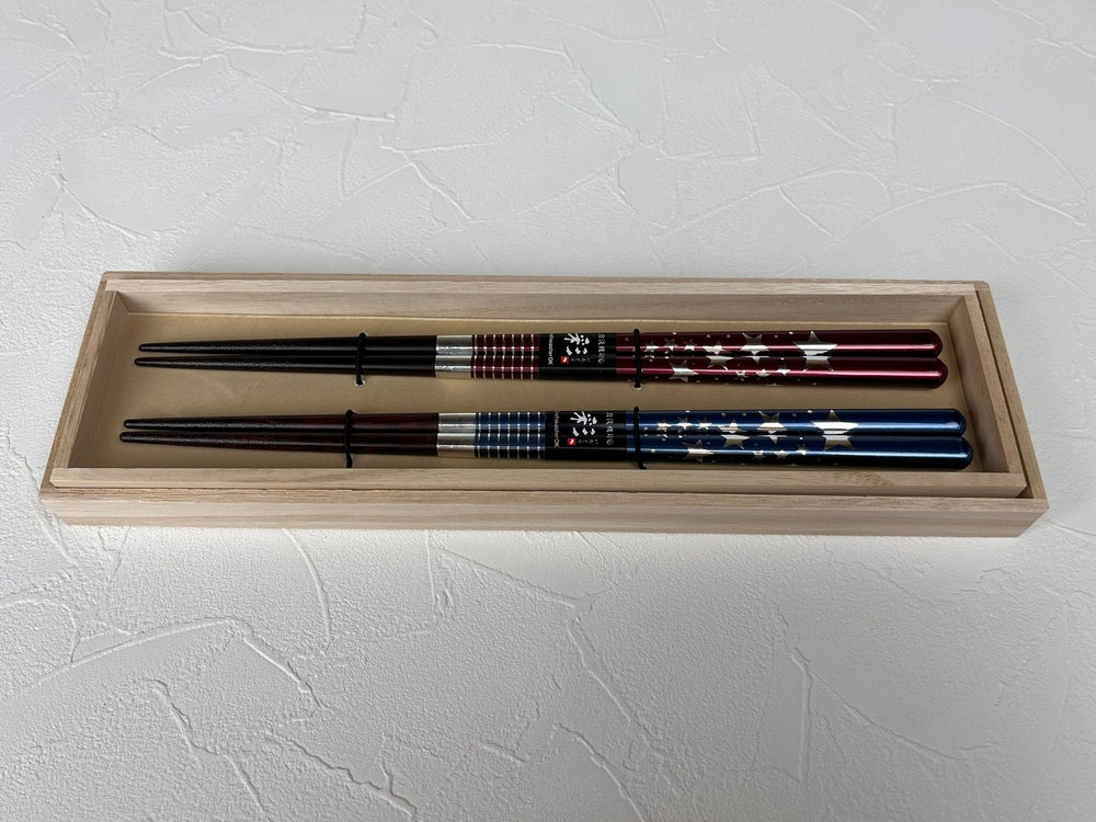 Luxurious Japanese chopsticks set Blue & Red shiny star Dishwash safe 23 cm