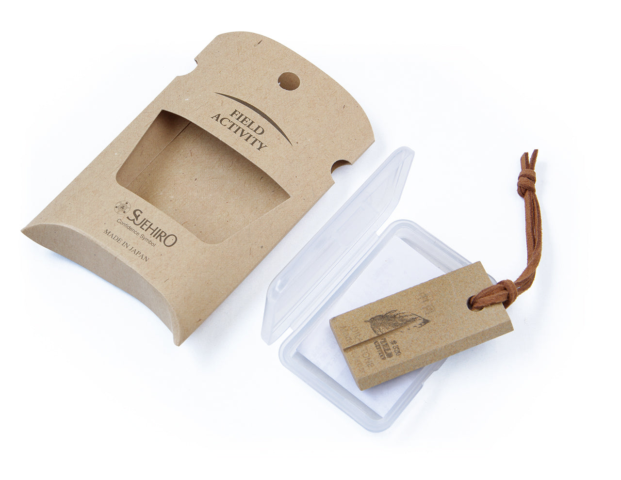 Field Activity is a synthetic whetstone developed using Suehiro's proprietary techniques. It's essential for anyone needing to quickly sharpen or repair tools while engaged in outdoor activities like camping or fishing, thanks to its highly compact design. This whetstone makes tasks such as adjusting knife edges, removing rust, and sharpening the points of fishing hooks or other small tools sharpening efficiently.