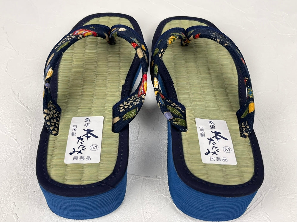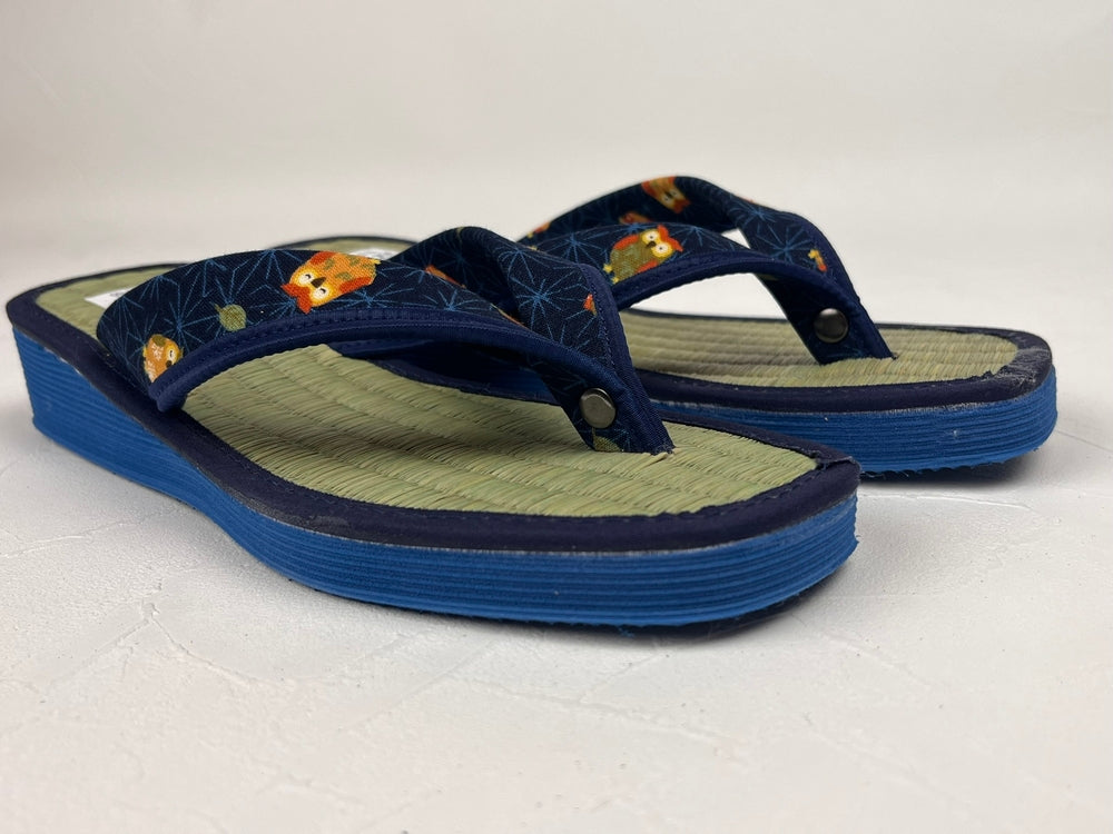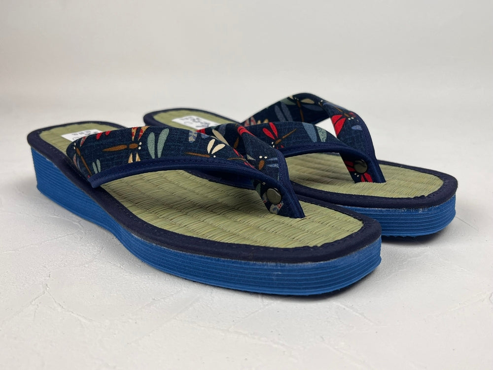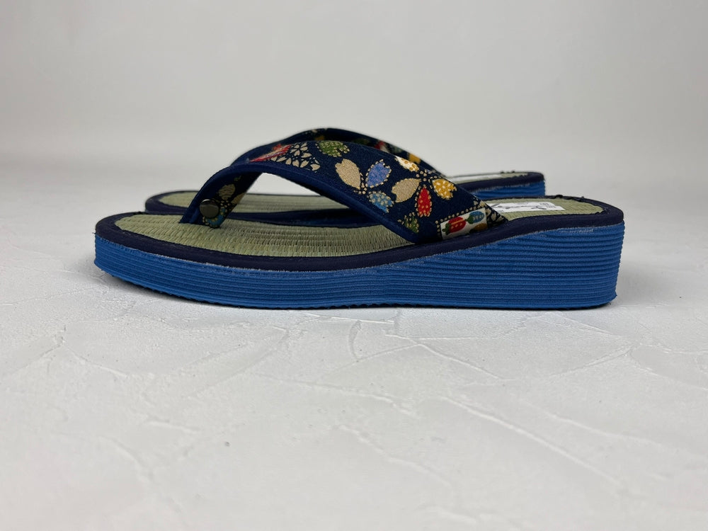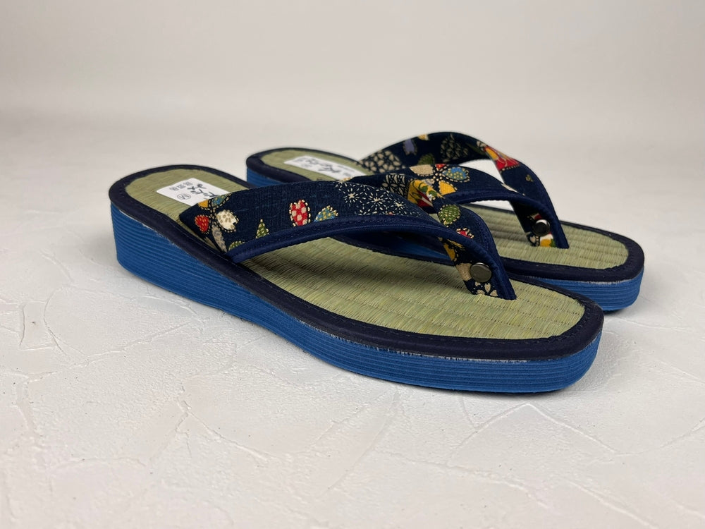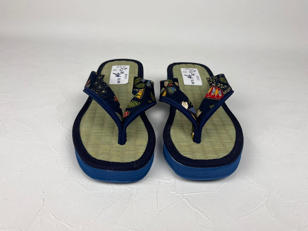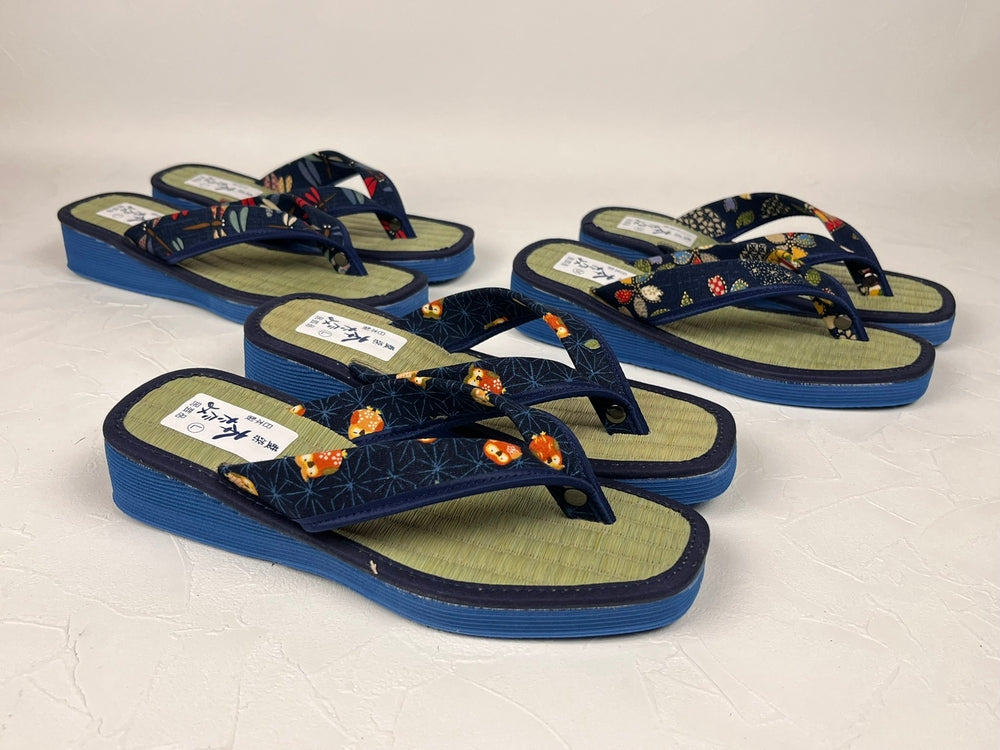 Crafted using genuine Japanese igusa (rush grass) in the traditional woven style used for real tatami mats--bringing you that airy comfort that stays fresh all day long. Designed in a women sandal style, they feature a deep indigo fabric that reflects timeless Japanese aesthetics.